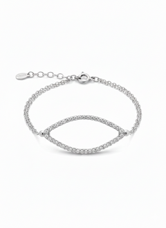 Linee morbide e luminose che si incontrano in un equilibrio perfetto. Questo bracciale in Argento925, impreziosito da zirconi scintillanti, gioca con una forma allungata ed elegante che valorizza il polso con naturalezza.