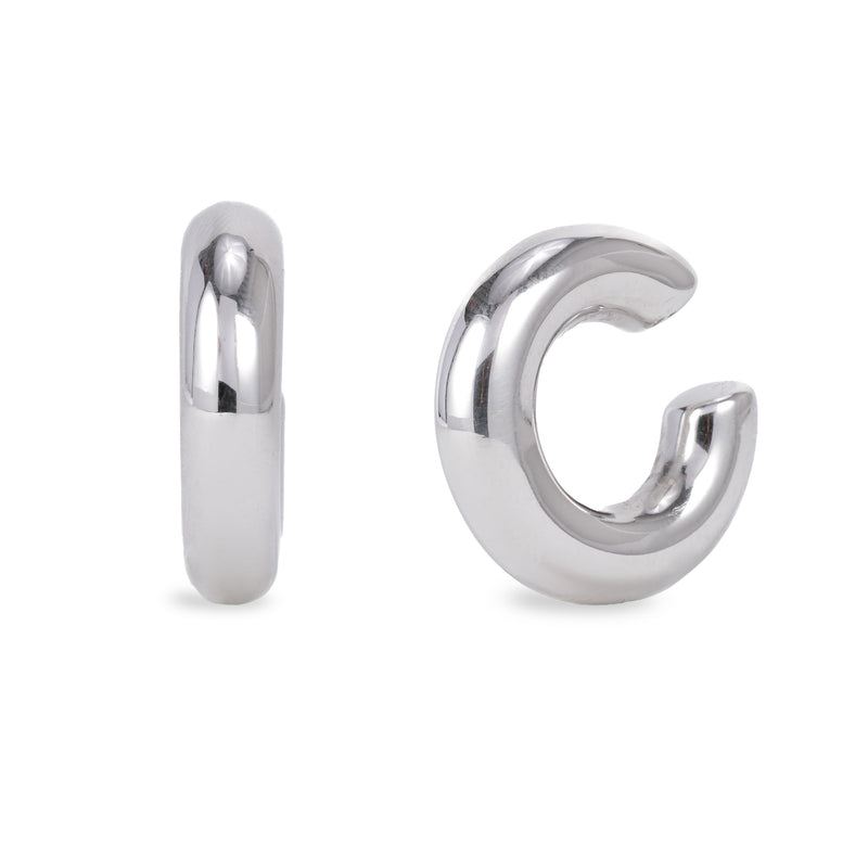 Questo earcuff in argento925 rodiato veste l’orecchio con una curva morbida e decisa, che riflette la luce come uno specchio d’acqua.