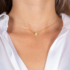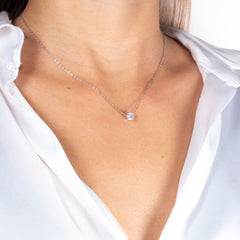 Lo zircone incastonato al centro della catenina illumina il décolleté con una brillantezza discreta, perfetta per ogni occasione.