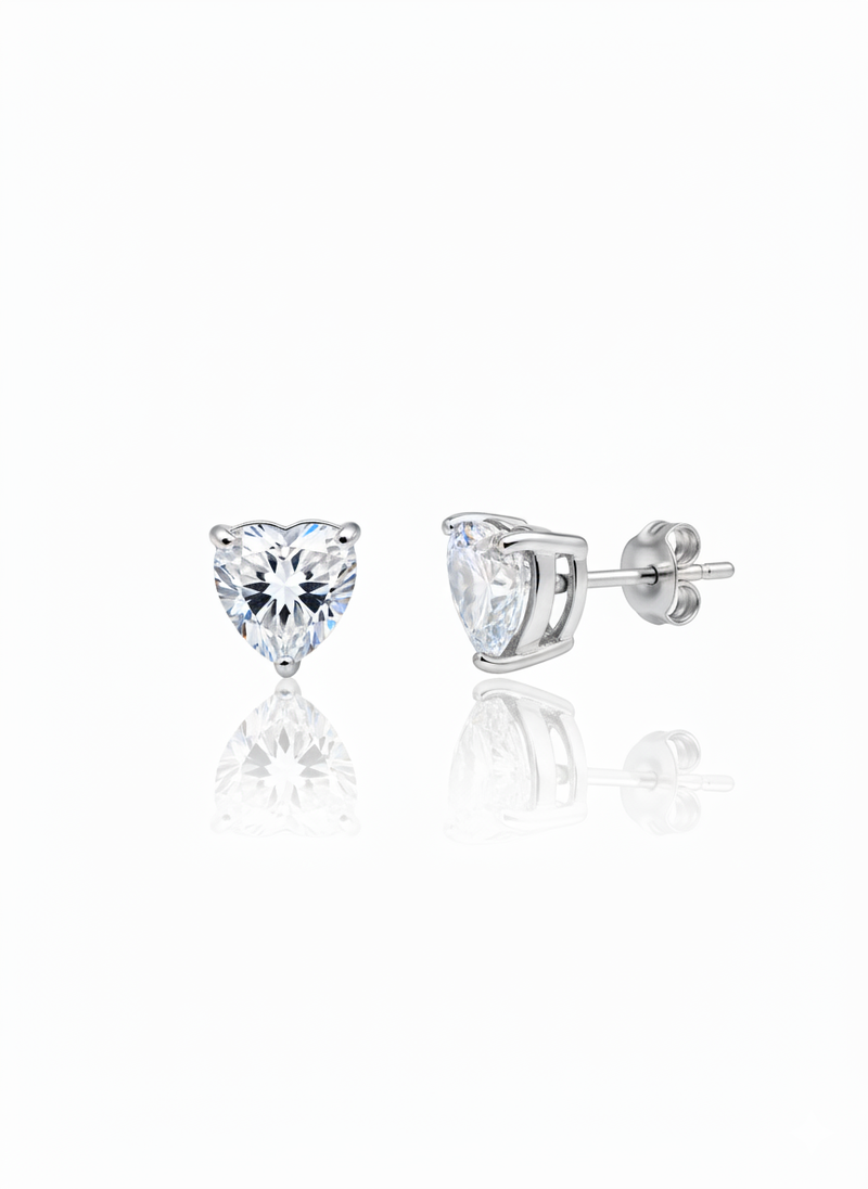 Orecchino punto luce con zircone a forma di cuore incastonato in argento 925 rodiato