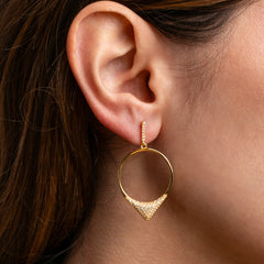 Eleganti ma con carattere, questi orecchini a cerchio reinterpretano un grande classico in chiave contemporanea. La linea pulita dell’Argento 925 placcato oro 18k incontra un dettaglio geometrico impreziosito da zirconi incastonati luminosi, che catturano la luce ad ogni movimento.